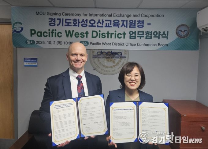 [경기핫타임뉴스=김삼영 기자] 화성오산교육지원청은 10월 2일 미국방부교육청 대회의실에서 미국 Pacific West District와 국제교류협력 업무협약(MOU)을 맺고, 학생 맞춤형 글로벌 교육 프로그램을 본격적으로 추진한다.