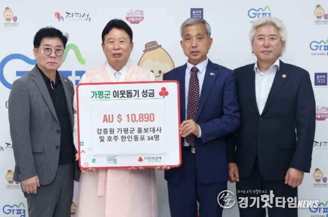 강흥원 홍보대사는 “호주 곳곳에 사는 교민들이 호우 피해 주민들에게 위로와 힘이 되기를 바라는 마음으로 성금을 모았다”며 “이를 계기로 가평군과 호주 교민 사회 간의 우정이 더욱 굳건하게 이어지길 바란다”고 전했다.
