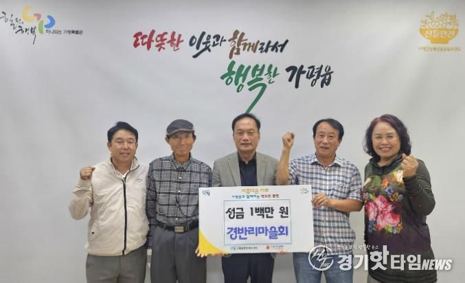 [경기핫타임뉴스=김형철 기자] 가평군 가평읍은 최근 경반리 마을회에서 취약계층 이웃을 돕기 위해 성금 100만 원을 기탁했다고 밝혔다.