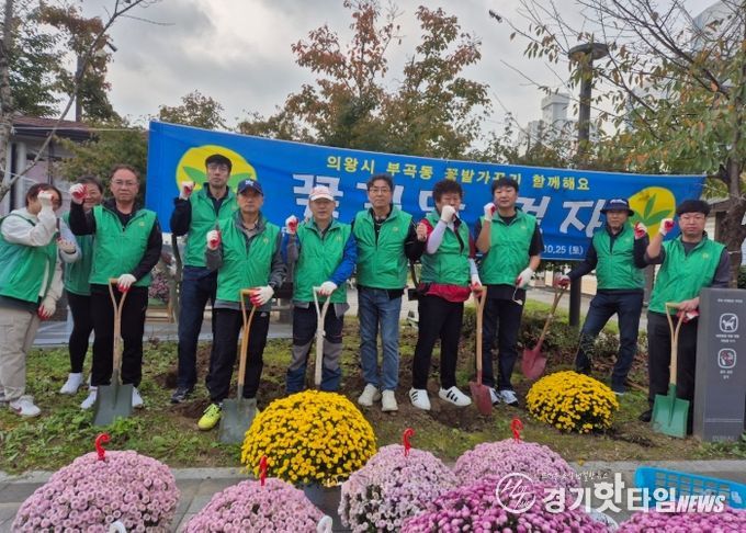 [경기핫타임뉴스=김삼영 기자] 의왕시 부곡동 새마을지도자협의회는 10월 25일, 가을을 맞아 지역 어르신들의 휴식 공간인 부곡공원 화단에 국화를 식재하고 관내 농가를 방문해 가을철 농촌일손돕기 봉사활동을 전개했다.