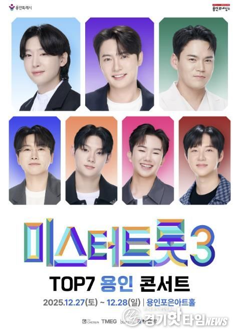 [경기핫타임뉴스=김삼영 기자] 용인문화재단은 오는 12월 27일부터 28일까지 용인포은아트홀에서 ‘미스터트롯3 TOP7 콘서트’를 선보인다. 공연은 27일 오후 1시·6시, 28일 오후 1시 총 3회 진행된다.