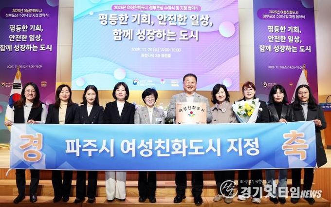 [경기핫타임뉴스=김형철 기자] 파주시는 지난 26일 성평등가족부와 ‘여성친화도시 지정 협약’을 체결하고, 지난 5년간의 성과를 기반으로 ‘성 평등한 도시’조성을 위해 힘차게 도약할 것이라고 밝혔다.