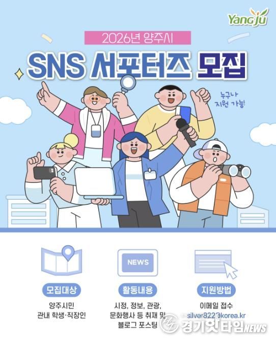 [경기핫타임뉴스=김형철 기자] 양주시가 시민과 소통하며 시정 소식과 지역의 숨은 매력을 널리 알릴 '2026년 양주시 SNS 서포터즈'를 오는 12월 1일부터 10일까지 10일간 모집한다.