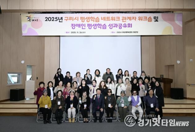 [경기핫타임뉴스=김형철 기자] 구리시는 지난 11월 26일 구리시 여성행복센터 대강당에서 평생학습 기관(단체) 및 학습동아리 관계자 50여 명이 참석한 가운데 ‘2025년 구리시 평생학습 네트워크 관계자 워크숍 및 장애인 평생학습 성과공유회’를 개최했다.