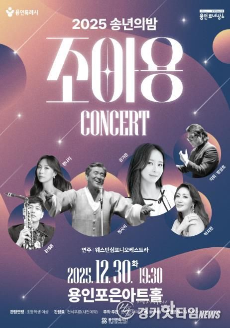 [경기핫타임뉴스=김삼영 기자] 용인문화재단은 오는 12월 30일 용인포은아트홀에서 지역예술인과 함께하는 ‘2025년 송년의 밤 - 조아용 콘서트‘를 용인예총(한국예총 용인지회)과 공동 개최한다.