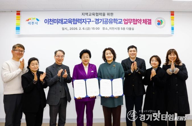 [경기핫타임뉴스=김형철 기자] 이천시는 2월 6일, 2026년도 이천미래교육협력지구(경기공유학교 학교맞춤형) 사업의 원활한 추진을 위해 이천교육지원청과 ‘이천미래교육협력지구-경기공유학교 업무협약’을 체결했다고 밝혔다.