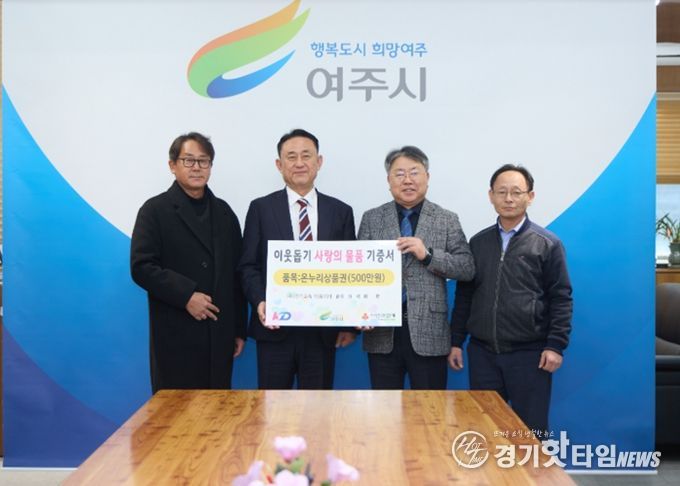 [경기핫타임뉴스=김형철 기자] KD운송그룹은 다가오는 설 명절을 맞아, 2월 6일 여주시청을 방문하여 관내 어려운 이웃들을 위한 온누리 상품권 500매(500만원 상당)를 기탁했다.