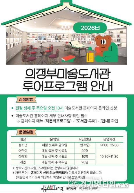 [경기핫타임뉴스=김형철 기자] 의정부시는 미술 특화 도서관으로서의 가치와 정체성을 시민과 공유하고 소통하기 위해 의정부미술도서관 투어 프로그램을 운영한다.