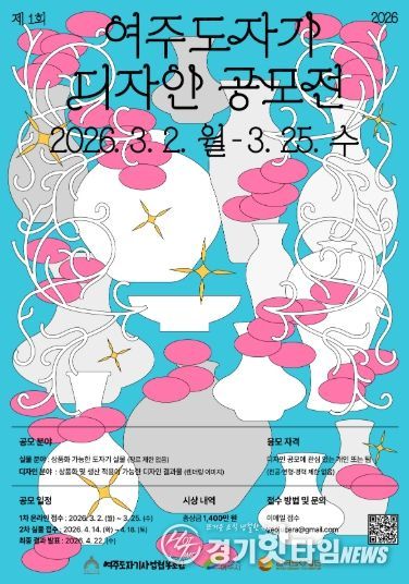 [경기핫타임뉴스=김형철 기자] 대한민국 대표 도자 생산지 여주시가 도자산업 전반을 조망하고, 도자 디자인의 창의적 확장을 위해 ‘제1회 여주도자기 디자인 공모전’을 개최한다. 이번 공모전은 혁신적인 도자 디자인을 발굴해 문화관광 콘텐츠로 확장하는 데 의미가 있으며, 수상작은 오는 5월 1일부터 10일까지 열리는 제38회 여주도자기축제 기간에 전시할 예정이다.