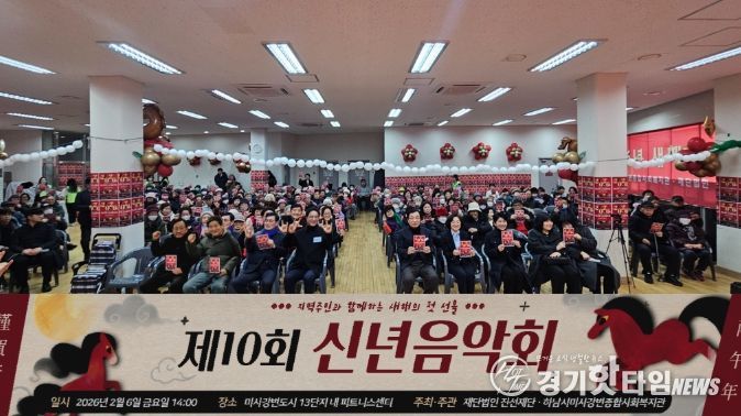 [경기핫타임뉴스=김형철 기자] 2026년 붉은 말의 해 병오년을 맞이하여 하남시미사강변종합사회복지관과 재단법인 진선재단은 지난 6일 ‘제10회 지역주민 신년음악회’를 공동 주최·주관하고, 300명 이상의 지역주민이 참석한 가운데 새해의 힘찬 시작을 알렸다.