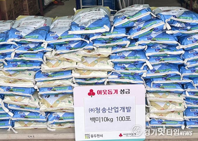 [경기핫타임뉴스=김형철 기자] 동두천시 상패동 소재 산업폐기물 처리업체 청송산업개발은 지난 11일 설 명절을 맞아 상패동 행정복지센터에 백미 10kg 100포를 기탁했다고 밝혔다.