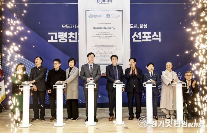 [경기핫타임뉴스=김삼영 기자] 화성특례시는 11일 세계보건기구(WHO) 고령친화도시 국제 네트워크(GNAFCC) 인증 획득을 기념하는 '화성특례시 WHO 고령친화도시 인증 선포식'을 개최했다.