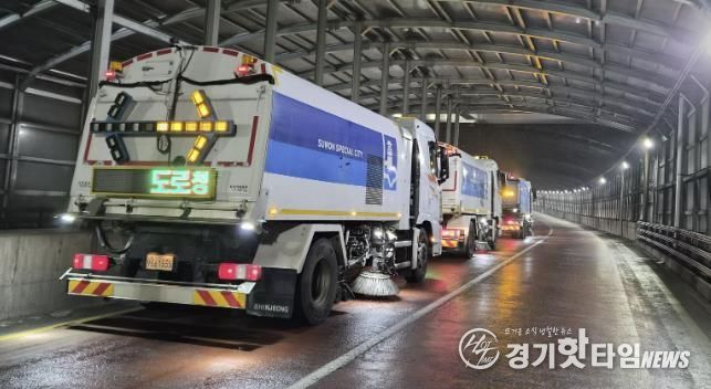 [경기핫타임뉴스=김삼영 기자] 수원시 영통구는 지난 11일 설 명절을 맞아 귀성객들에게 쾌적하고 안전한 도로 환경을 제공하기 위해 주요 도로 구간에 대한 노면 청소차량 합동 작업을 실시했다.
