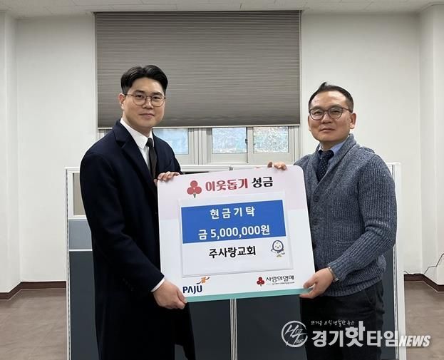 [경기핫타임뉴스=김형철 기자] 설 명절을 앞둔 지난 10일, 금촌2동에 위치한 주사랑교회가 지역 내 취약계층을 위한 성금 500만 원을 금촌2동에 전달했다.