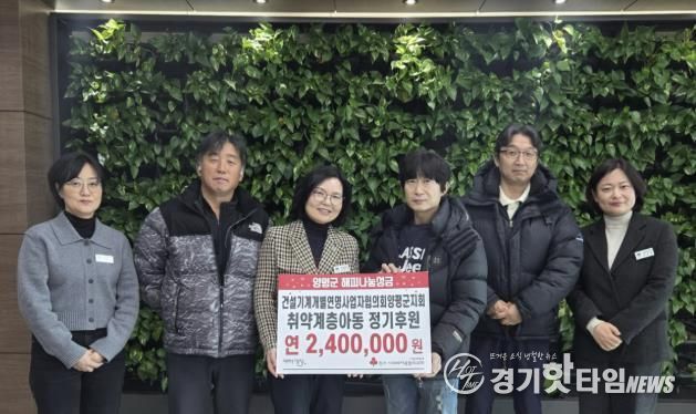 한편, 건설기계개별연명사업자협의회 양평군지회는 청소년 장학사업을 비롯해 ‘행복의 집 희망릴레이’ 집수리 지원 사업과 ‘행복 나눔 PLUS 4호 장바구니’ 어르신 장보기 동행 사업 등 다양한 사회 공헌 활동을 펼치며 아동과 노인을 아우르는 맞춤형 나눔을 이어가고 있다.