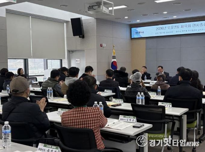 [경기핫타임뉴스=김삼영 기자] 광주시 오포2동 체육회는 지난 13일 자연채 푸드팜센터에서 도의원·시의원과 체육회 회원 등 45여 명이 참석한 가운데 연시 총회를 개최했다.