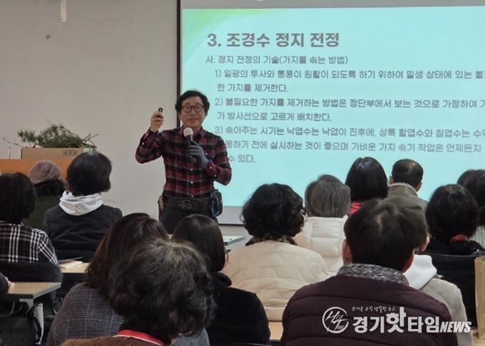 [경기핫타임뉴스=김삼영 기자] 평택시는 지난 10일 오성면 농업생태원 방문자센터에서 시민정원사 및 정원에 관심 있는 시민을 대상으로 ‘정원수의 이해와 전지·전정’을 주제로 한 특별 강연을 개최했다.