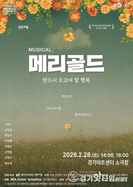 [경기핫타임뉴스=김삼영 기자] 경기도와 경기아트센터는 오는 28일 오후 2시와 6시 경기아트센터 소극장에서 뮤지컬 ‘메리골드’ 공연을 선보인다.