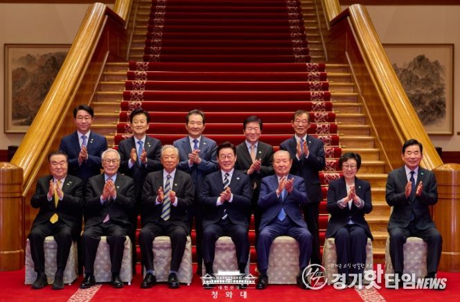 [경기핫타임뉴스=김삼영 기자] 이재명 대통령은 오늘 청와대 본관에서 1시간 45분 동안 민주당 상임고문 열 분과 오찬 간담회를 가졌다. 참석자는 권노갑 고문과 김원기·임채정·문희상·김진표·정세균·박병석 전 국회의장, 한명숙 전 총리, 정동영 통일부 장관, 이용득 고문이다.
