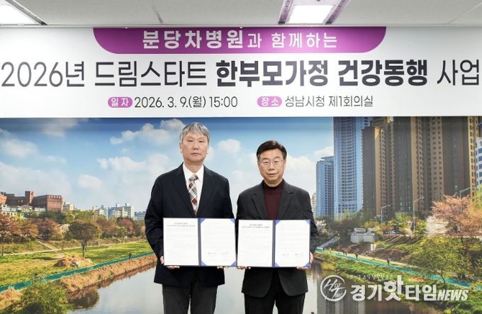 시는 이날 오후 3시 시청 4층 제1회의실에서 신상진 성남시장과 윤상욱 분당차병원장 등이 참석한 가운데 ‘드림스타트 한부모가정 건강 동행 사업’ 추진에 관한 업무협약을 했다.