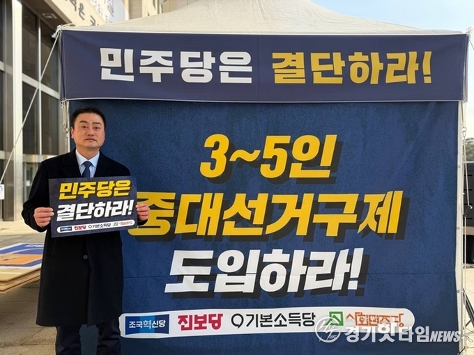 [경기핫타임뉴스=김삼영 기자] 홍성규 진보당 경기도지사 후보는 10일, 서울 여의도 국회의사당을 찾아 본청 앞에 차려진 '진보개혁 야4당 정치개혁 촉구 천막농성'에 함께 했다고 밝혔다.