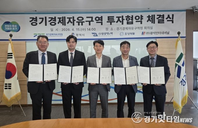 [경기핫타임뉴스=김삼영 기자] 경기경제자유구역청은 15일 경기경제청 8층 회의실에서 평택시 및 자동차부품, 반도체, 화학 제조기업 5개사(㈜왕성이노텍, 조양메탈㈜, ㈜광석인터내셔날/그 외 2개 기업 서면 협약)와 평택 포승(BIX)지구 산업시설용지 투자협약을 체결했다.