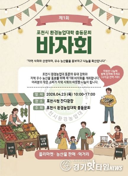 [경기핫타임뉴스=김형철 기자] 포천시 환경농업대학 총동문회가 오는 4월 23일, 지역사회와의 상생과 나눔을 실천하기 위한 ‘제1회 나눔 바자회’를 개최한다.