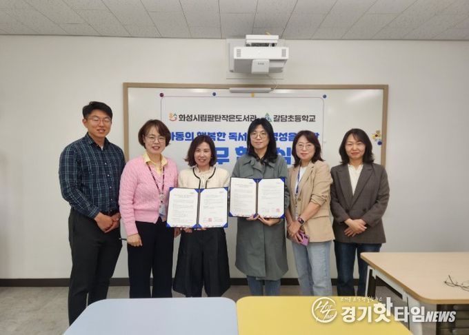한편, 화성시립팔탄작은도서관은 그동안 지역 내 여러 학교와 협력체계를 구축해 다양한 독서 프로그램을 운영해 왔다. 이번 협약을 계기로 갈담초등학교와의 협력을 강화해 학생들의 창의력과 사고력, 인문학적 소양 함양을 위한 지원을 확대할 계획이다.