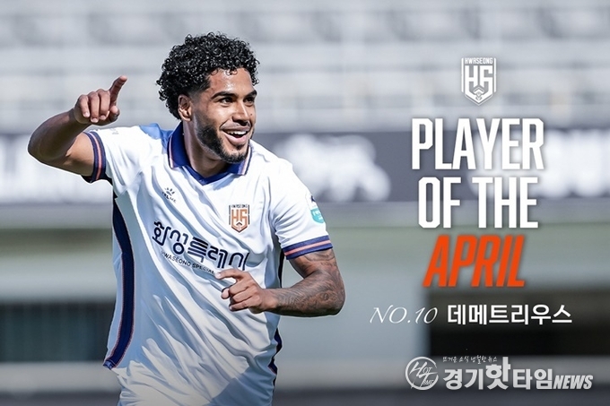 [경기핫타임뉴스=김삼영 기자] 화성FC 공격의 테크니션 데메트리우스(FW, 10번)가 팬 투표를 통해 2026시즌 4월 월간 MVP로 선정됐다.