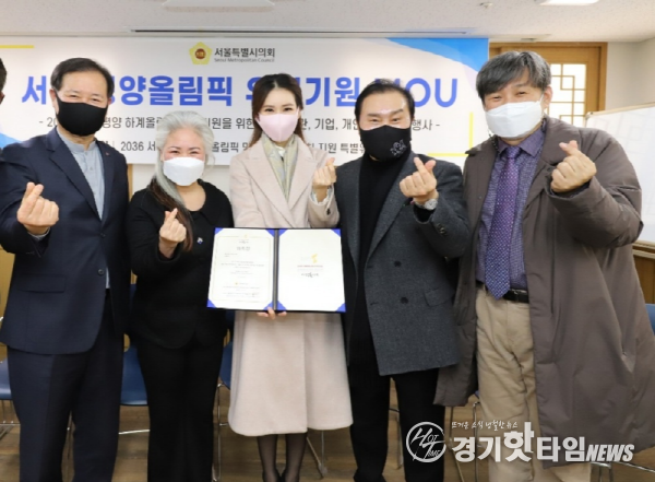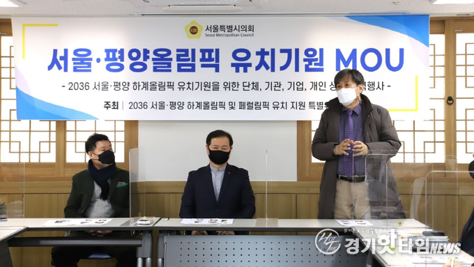 [경기핫타임뉴스=김형철 기자] 서울평양올림픽지원특별위원회(유용 위원장)은 밀려드는 서포터스 단체참여와 각 분야 시민 홍보대사 위촉을 통해 어게인 올림픽 열기를 체감하고 있다. 2036서울평양올림픽공동개최에 기여를 하고자 하는 10 여 단체들과 업무협약을 체결하고, 시민 홍보대사를 위촉했다.
