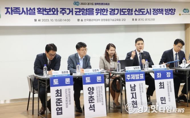 [경기핫타임뉴스=김삼영 기자] 경기도의회 기획재정위원회 최민 의원(더불어민주당, 광명2)은 10월 13일 광명시 한국폴리텍대학 광명융합기술교육원 강당에서 '자족시설 확보와 주거 균형을 위한 경기도형 신도시 정책 방향' 토론회를 개최했다. 본 토론회는 경기도와 경기도의회가 공동으로 주최하는 ‘2023 경기도-경기도의회 정책토론 대축제’의 일환으로 개최됐다.