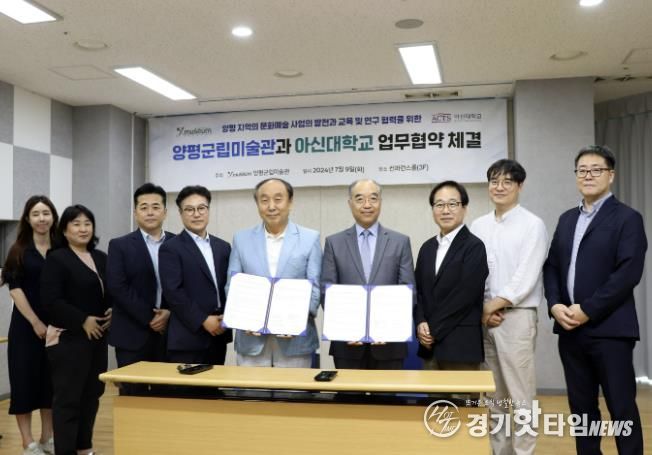 [경기핫타임뉴스=김형철 기자] 양평군립미술관은 9일 하계훈 양평군립미술관장과 정홍열 아신대학교 총장이 참석한 가운데 양평지역의 문화예술 사업의 발전과 교육 및 연구 협력을 위한 업무협약을 체결했다.