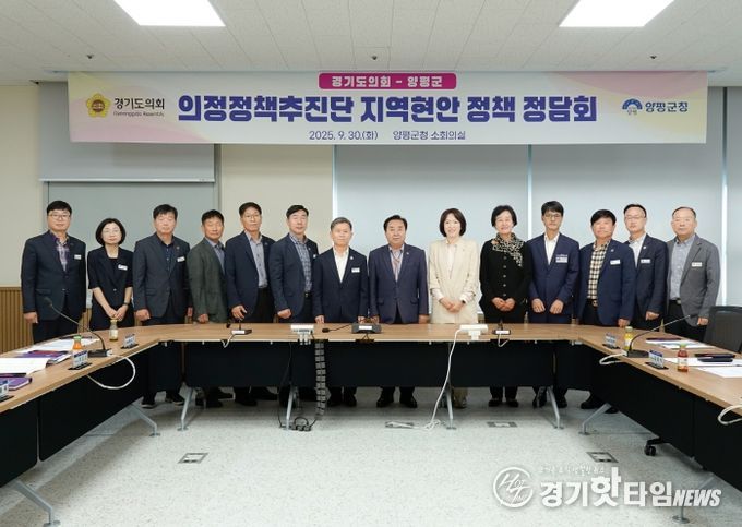[경기핫타임뉴스=김삼영 기자] 경기도의회 의정정책추진단은 30일 양평군청에서 ‘지역 현안 정책 정담회’를 열고 양평지역의 주요 정책 현안과 경기도의회 차원의 지원방안을 논의했다.