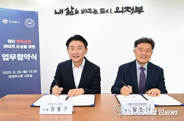 [경기핫타임뉴스=김형철 기자] 의정부시는 9월 29일 (사)한국대드론산업협회와 ‘첨단 방위산업 생태계 조성을 위한 업무협약’을 체결했다.