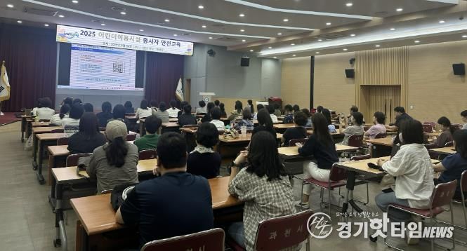 [경기핫타임뉴스=김삼영 기자] 과천시는 지난 30일 시청 대강당에서 관내 어린이 이용 시설 종사자 120여 명을 대상으로 실습 중심의 ‘어린이 안전교육’을 진행했다. 이번 교육은 행정안전부 주관으로, ‘어린이 안전관리에 관한 법률’에 따른 법정 의무교육이다.