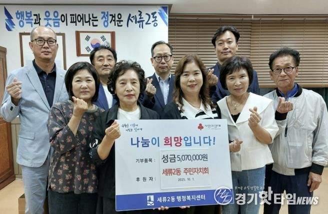 [경기핫타임뉴스=김삼영 기자] 수원시 권선구 세류2동 주민자치회는 지난 10월 1일, 추석 명절을 맞이하여 이웃돕기 성금 507만원을 세류2동 행정복지센터에 기부했다.