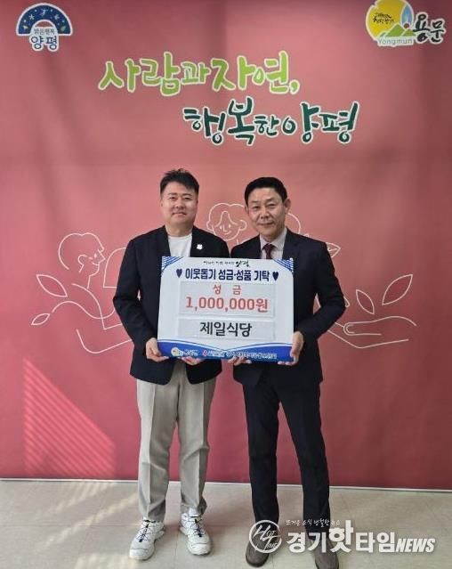 [경기핫타임뉴스=김형철 기자] 양평군 용문면은 10월 1일, 관내 음식점인 제일식당이 지역 내 취약계층을 돕기 위해 용문면사무소를 방문해 기부금 100만 원을 전달했다고 밝혔다.