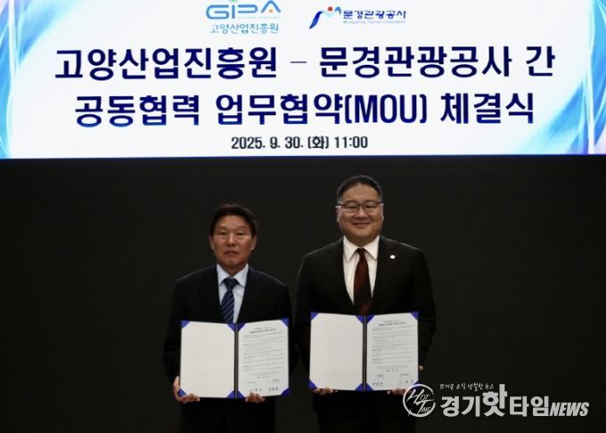 [경기핫타임뉴스=김형철 기자] 고양산업진흥원이 지난 30일, 고양아쿠아특수촬영스튜디오에서 문경관광공사와 공동협력 업무협약 MOU를 체결했다.