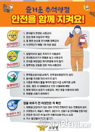 이종충 광명소방서장은 “가족과 함께하는 따듯한 추석 연휴가 안전속에서 이어질 수 있도록 시민 여러분께서 생활 속 작은 안전수칙을 꼭 지켜주길 바란다”고 전했다.