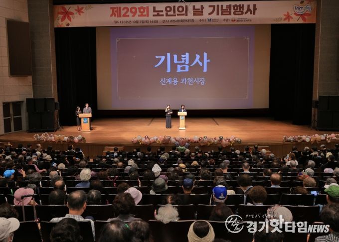 [경기핫타임뉴스=김삼영 기자] 과천시는 2일 시민회관 대극장에서 ‘제29회 노인의 날 기념식’을 열었다. 시가 주최하고 과천시노인복지관이 주관한 가운데 열린 이날 행사에는 지역 어르신 1천1백여 명이 참석했다.