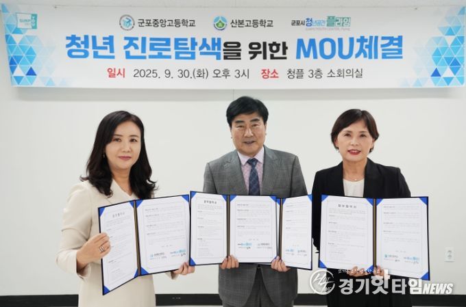 [경기핫타임뉴스=김삼영 기자] 군포시 청년공간플라잉(센터장 조남)은 지난 9월 30일 군포중앙고(교장 이은경), 산본고(교장 김은정)와 함께 2025 창업스쿨 사업 관련 업무협약을 맺었다.