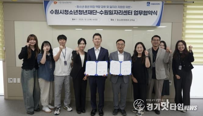 [경기핫타임뉴스=김삼영 기자] 수원시청소년청년재단과 수원일자리센터는 10월 2일, 청소년청년의 취업 역량 강화와 일자리 지원을 위한 업무협약(MOU)을 체결했다.