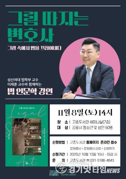 [경기핫타임뉴스=김형철 기자] 김포시 고촌도서관에서 오는 11월 8일 오후 2시부터 4시까지 예술작품 속에 숨은 법률 이야기를 주제로 한 인문학 강연을 운영한다.
