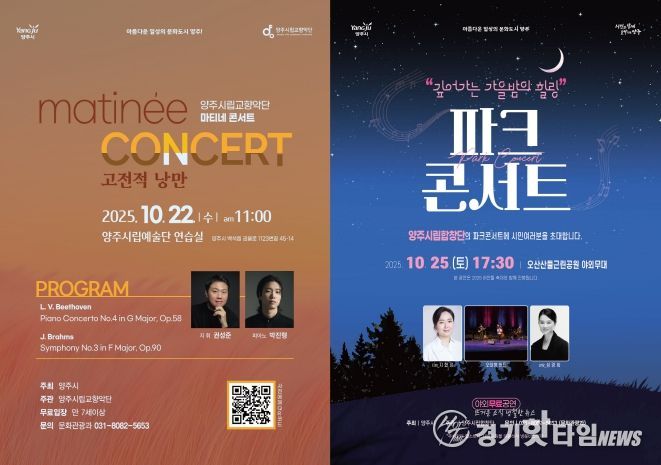 양주시가 깊어가는 가을 정취 속에서 시민들에게 품격 있는 문화예술 향유 기회를 제공하기 위해 오는 22일 ‘마티네 콘서트’와 25일 ‘파크콘서트’를 연이어 개최한다.