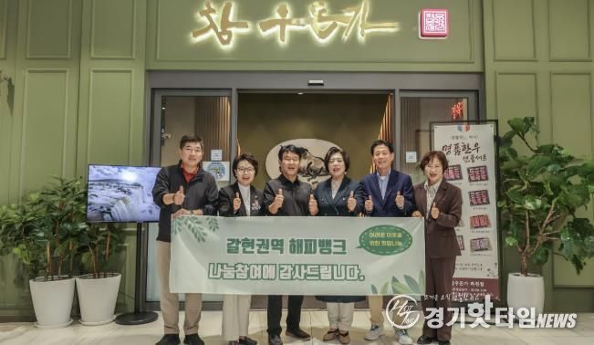 이를 기념해 같은 날 갈현권역 해피뱅크 참여 가게 현판식이 진행됐으며, 신계용 과천시장과 윤치훈 참우돈가 이사 등 관계자들이 참석해 후원의 뜻을 함께 나눴다.