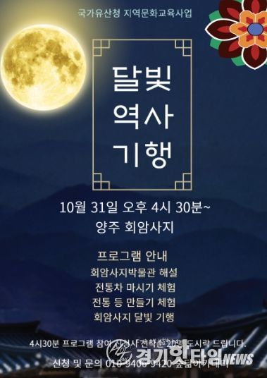 특히 오는 10월 31일 저녁, 회암사지 일원에서 시민 누구나 참여할 수 있는 야간 체험행사 ‘달빛역사기행’이 열린다.