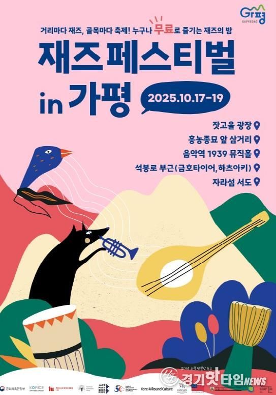 [경기핫타임뉴스=김형철 기자] 가평군은 (사)문화현상과 함께 오는 17일부터 19일까지 3일간 ‘재즈페스티벌 in 가평’을 개최한다. 이번 축제는 누구나 부담 없이 즐길 수 있는 무료 음악 축제로, 가평읍내 곳곳(잣고을 광장, 흥농종묘 앞 삼거리, 음악역1939 뮤직홀, 자라섬 서도 등)을 재즈 선율로 물들일 예정이다.