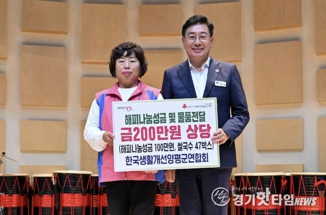 [경기핫타임뉴스=김형철 기자] 한국생활개선양평군연합회는 지난 9월 30일부터 10월 1일까지 강릉 한국여성수련원에서 열린 ‘2025년 생활개선양평군연합회 한마음대회’에서 쌀국수 47박스와 현금 100만 원, 총 200만 원 상당의 해피나눔성금을 기탁했다고 밝혔다.
