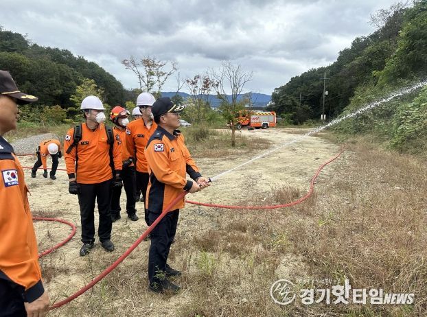 [경기핫타임뉴스=김삼영 기자] 경기도북부소방재난본부는 14일 포천시 동교동에 위치한 동교저수지에서 가을철 산불 발생 대비한 산불진압장비 운용 훈련을 실시했다.