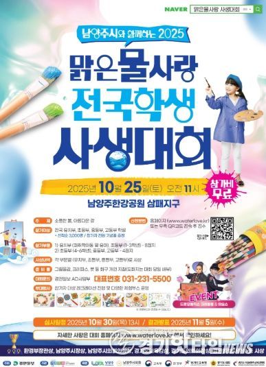 [경기핫타임뉴스=김형철 기자] 남양주시는 오는 25일 오전 11시 남양주한강공원 삼패지구에서 '2025 맑은물사랑 전국학생 사생대회'를 개최한다고 밝혔다.